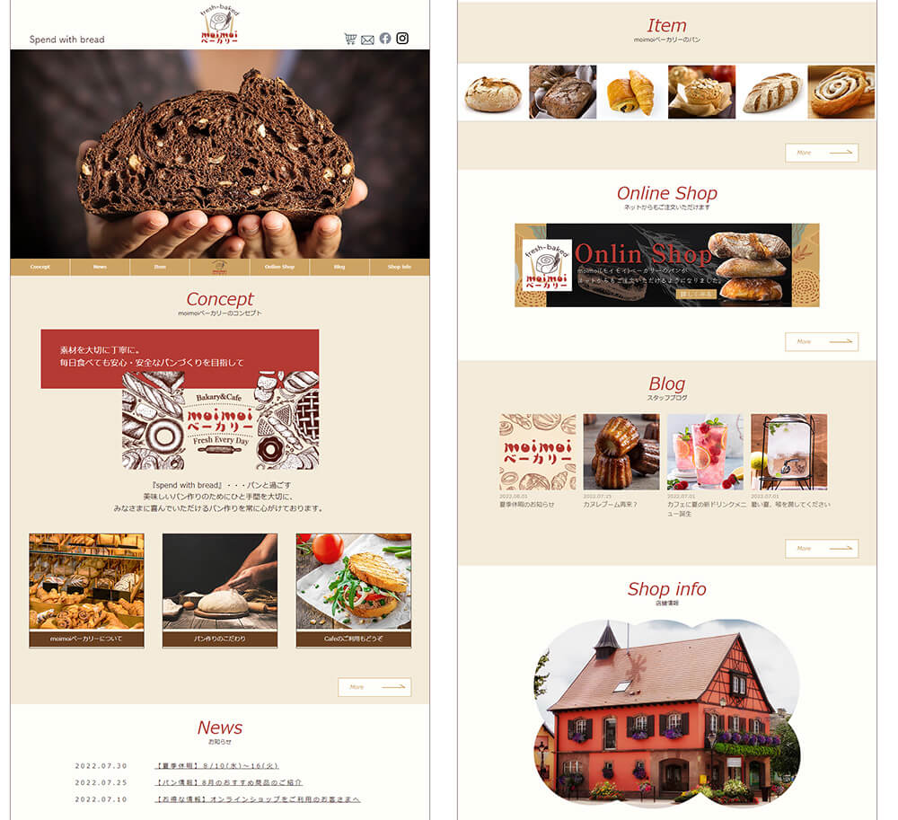 ベーカリーショップのサイト。美味しさが伝わるようにデザインしました。
